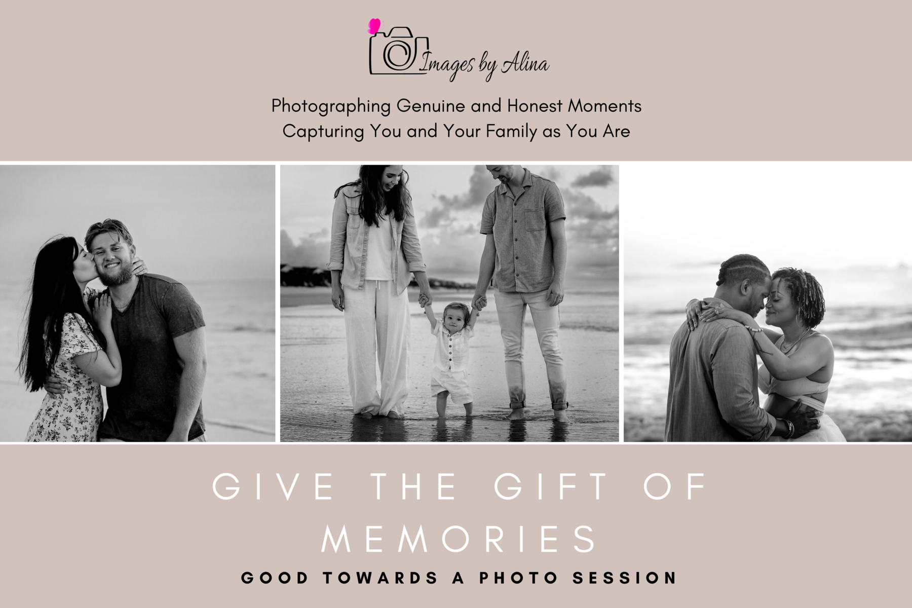 Purchase a gift card for yourself or for a loved one! Your purchased gift card credit will be provided through a unique code that can be applied towards any future session purchase.